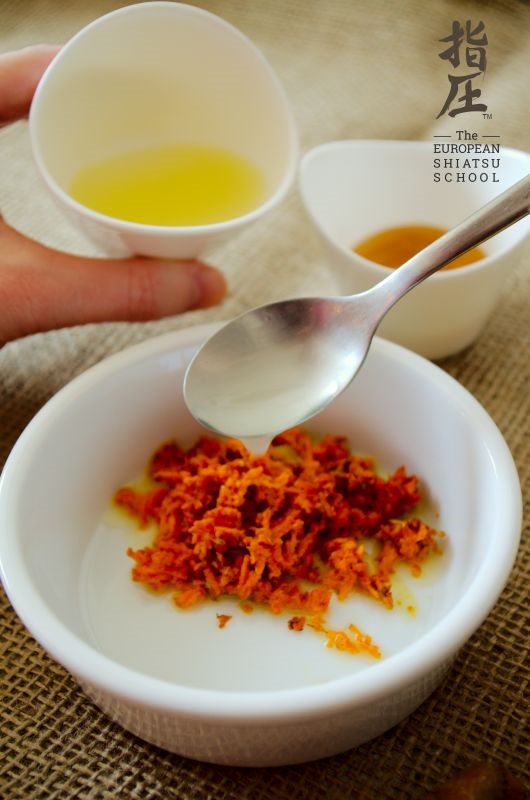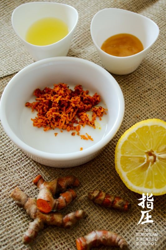 Czarowanie-marowanie:W przypadku świeżej kurkumy, zetrzyj korzeń na tarce i odmierz 2 łyzeczki; jeśli natomiast zdecydujesz się na mieloną, to odmierz 1 łyżeczkę. Wsyp do miseczki, dodaj cytrynę i wymieszaj – jeśli używasz kurkumy w proszku, rozmieszaj równo, by nie zostały żadne grudki. Następnie dodaj miód i wszystko razem wymieszaj na jednolitą masę.